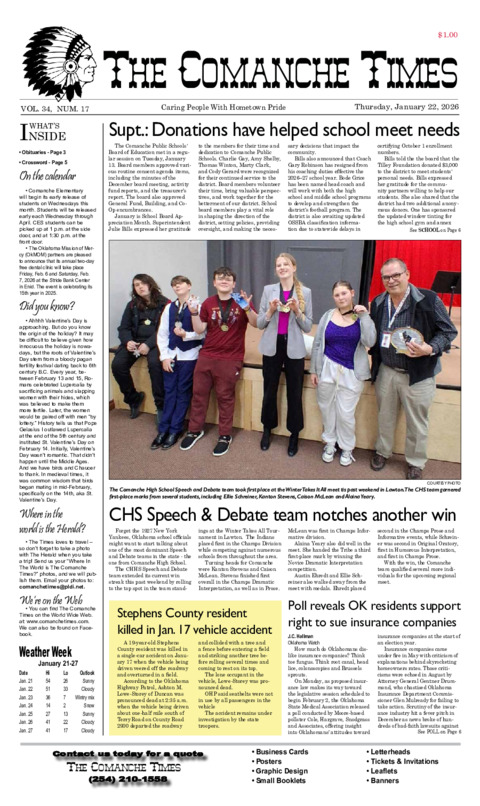 Veteran newspaper publishers Tommy and Patricia (Pattie) Wells have acquired The Comanche Times...